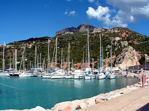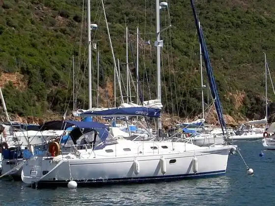 13 m velero DUFOUR GIBSEA 41 yardas atracado en un pequeño puerto típico y hermoso en Cerdeña ... cerca de las islas y las montañas ...