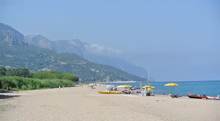 Playa central a pie del puerto